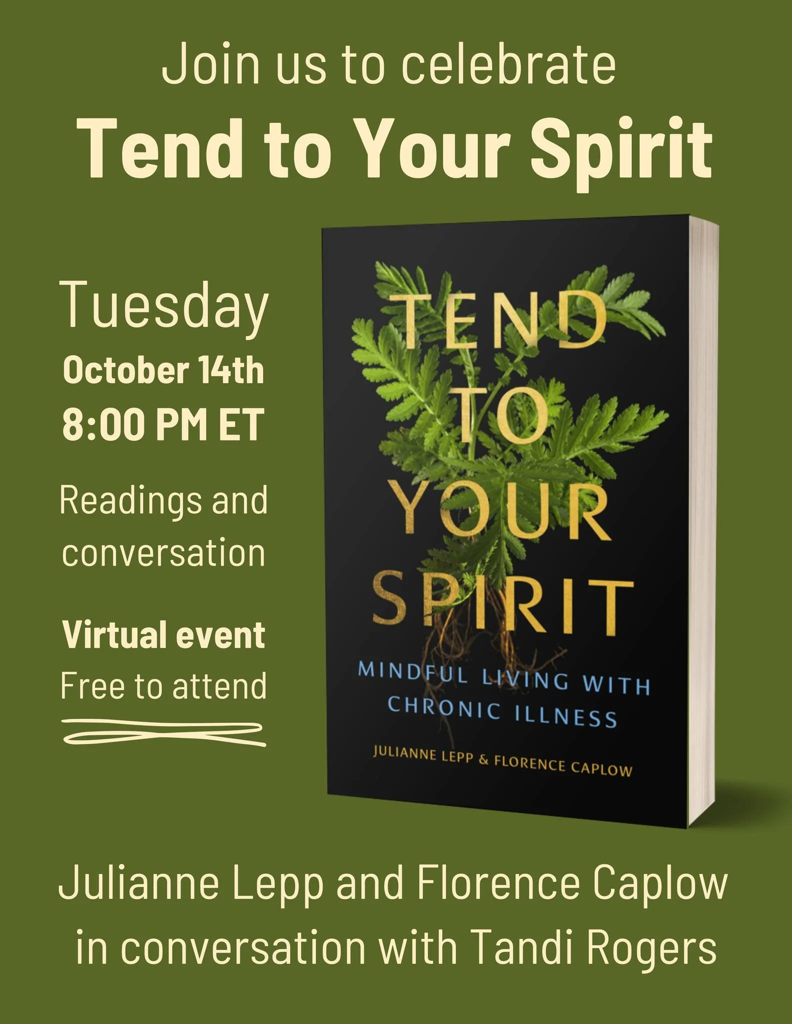At 5 pm Pacific time on Tuesday, October 14, UU minister Rev. Tandi Rogers will host an online book launch party for Tend to Your Spirit on Zoom with the authors, Julianne Lepp and Florence Caplow. We would love to see you there.